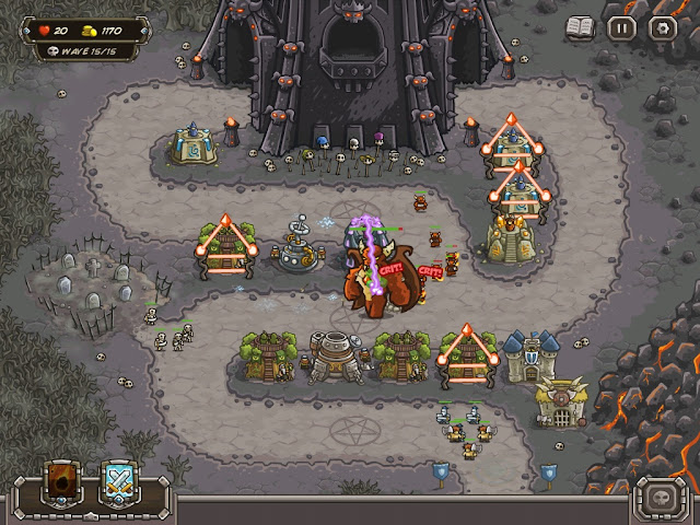 The mechanics are exactly what you would expect from a tower defense game. You have 4 basic tower types, each upgradable in variety of ways, including branching and specialization. Which does add multiple layers of strategy. Where Kingdom Rush separates itself from others is the addition of skill trees and heroes. As you make your way through the campaign you earn stars, which you can spend to upgrade the different towers and unlock heroes. You never have enough points to get everything, so everyone's game is a bit different based on what they chose to upgrade. Personally I opted out of using heroes and instead spent the extra points on upgrading the towers.
